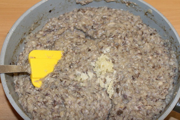 Česnek dodává hotovému houbovému občerstvení velmi jasnou chuť. Předpokládá se, že při dlouhodobém skladování ztrácí ostrou chuť, takže jej můžete dát v poměrně velkém množství. U houbového kaviáru z 1 kg vařeného másla budete potřebovat:
