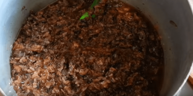 Houby se vaří a smaží se s jemně nakrájenou cibulí a mrkví do zlatova a prochází mlýnkem na maso. Do výsledné směsi se přidají drcené vlašské ořechy a česnek. Všechny ingredience jsou smíchány a dochuceny sójovou omáčkou. Jelikož je docela slaný, nemusíte hotové jídlo solit. Hotová hmota se navíc dusí po dobu 10-12 minut.