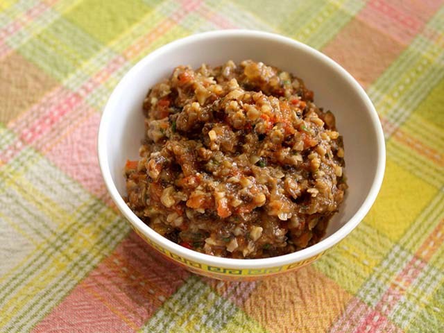 Houby se vaří po dobu 20 minut ve slané vodě, poté se nakrájejí na kousky a smaží se na horké pánvi, dokud nejsou uvařené. Na samostatné pánvi restujte cibuli s nasekaným chilli. Máslo a cibule s chilli se nechají projít mlýnkem na maso, promíchají se, dochutí se solí, česnekem a červenou paprikou. Celá směs se ještě pár minut dusí, ochladí a podává u večeře.