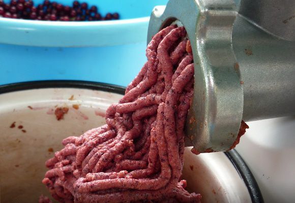 Umyté bobule se krouží v mlýnku na maso. Můžete to udělat i několikrát, pokud jsou otvory brusky příliš velké.